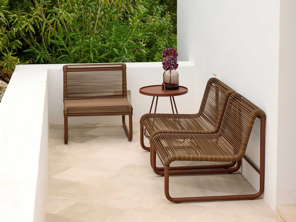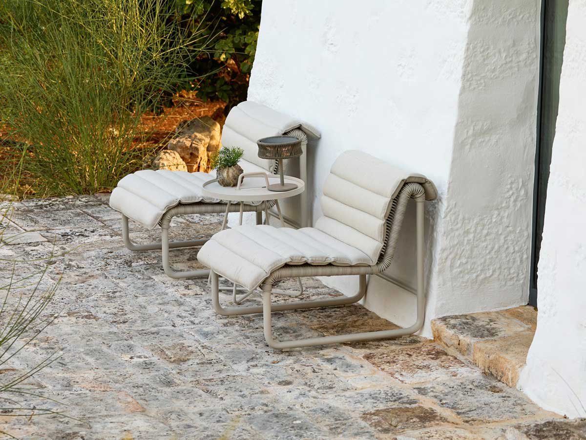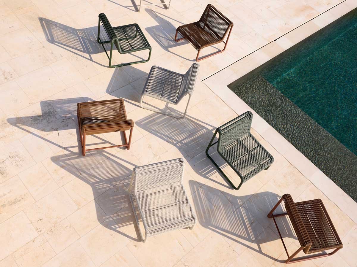 Det simple strengeflet er udført på en stærk, pulverlakeret aluminiumsramme, og de slidstærke materialer gør loungestolen velegnet til både ude og inde – fra private terrasser og poolområder til hotel-lounges, lobbyer og venteområder. Det luftige design gør det nemt at kombinere flere stole i grupper og skaber en fleksibel æstetik i enhver indretning. Fuldend loungestolen med den skræddersyede Al Dente loungehynde for ekstra komfort og et helstøbt udtryk.
