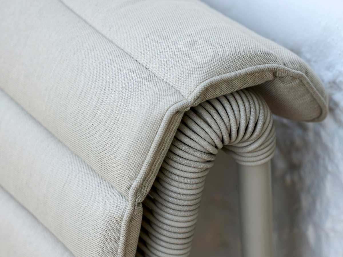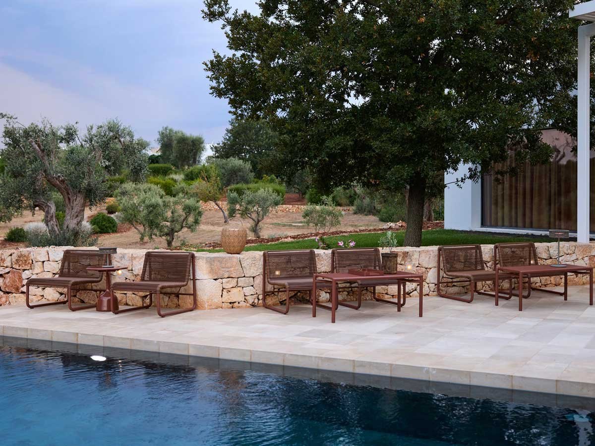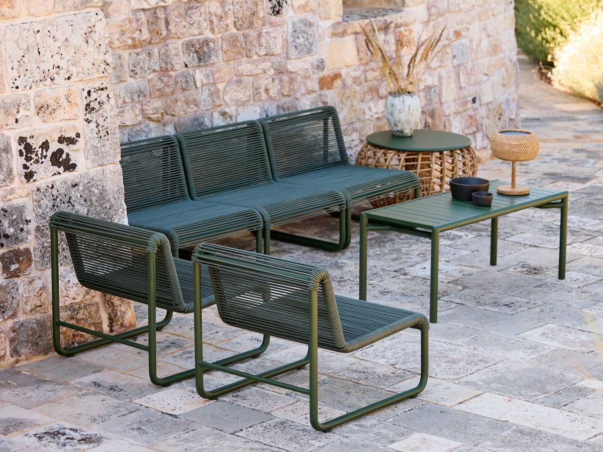 Det simple strengeflet er udført på en stærk, pulverlakeret aluminiumsramme, og de slidstærke materialer gør loungestolen velegnet til både ude og inde – fra private terrasser og poolområder til hotel-lounges, lobbyer og venteområder. Det luftige design gør det nemt at kombinere flere stole i grupper og skaber en fleksibel æstetik i enhver indretning. Fuldend loungestolen med den skræddersyede Al Dente loungehynde for ekstra komfort og et helstøbt udtryk.