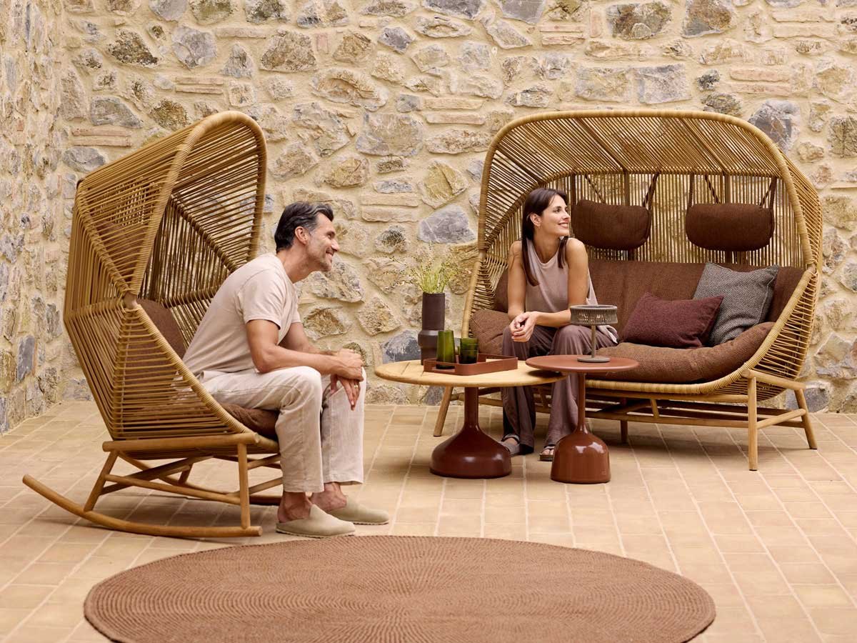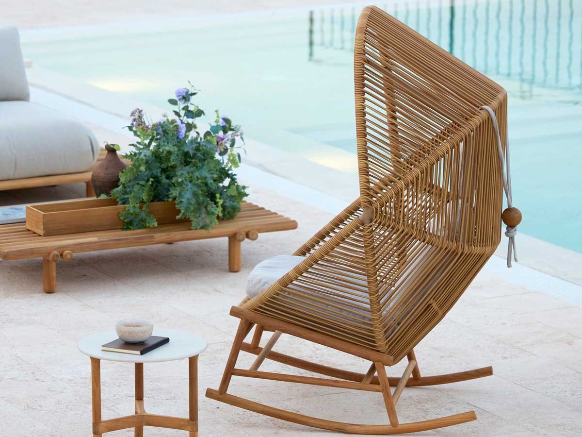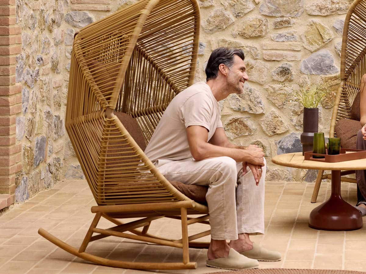 Hive gyngestolen forener det skulpturelle med den beroligende charme fra en klassisk gyngende bevægelse. Gyngestolen er designet af Foersom & Hiort-Lorenzen MDD og inspireret af de organiske former på en bikube. Den indbyder til en omfavnende, rede-lignende siddeoplevelse. Dens glatte base i teak tilfører naturlig varme og skaber en smuk kontrast til den håndflettede skal i Cane-line Weave® - et vejrbestandigt materiale, der sikrer et holdbart design til udendørs brug.