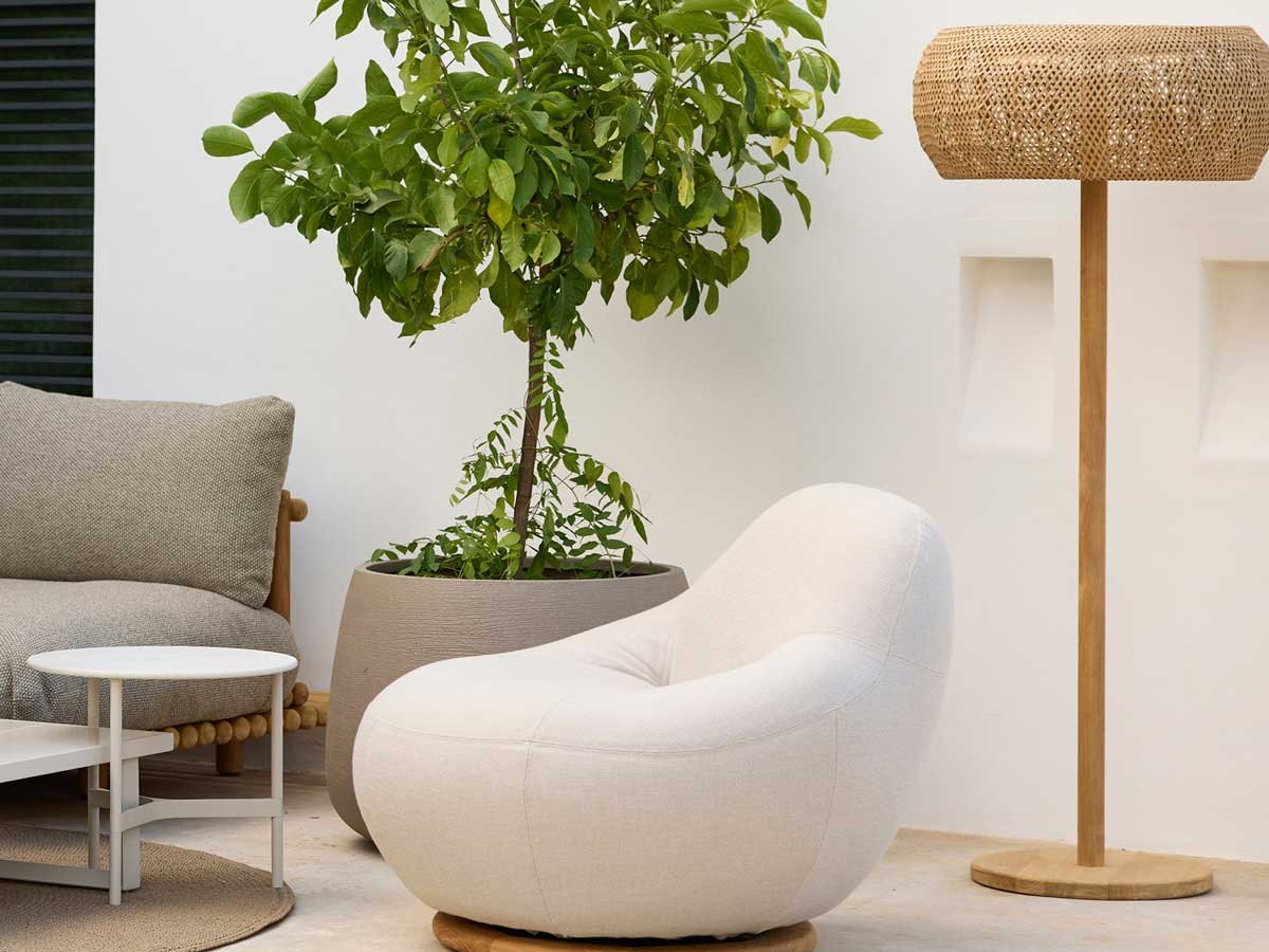 Illusion Glow standerlampen fra Cane-line Design er en skulpturel udendørslampe, der tilfører varme og atmosfære til uderummet. Med sin håndflettede lampeskærm og elegante fod i teak forener lampen håndværk og funktionalitet og skaber samtidig et raffineret fokuspunkt i udendørs lounge- og spiseområder.