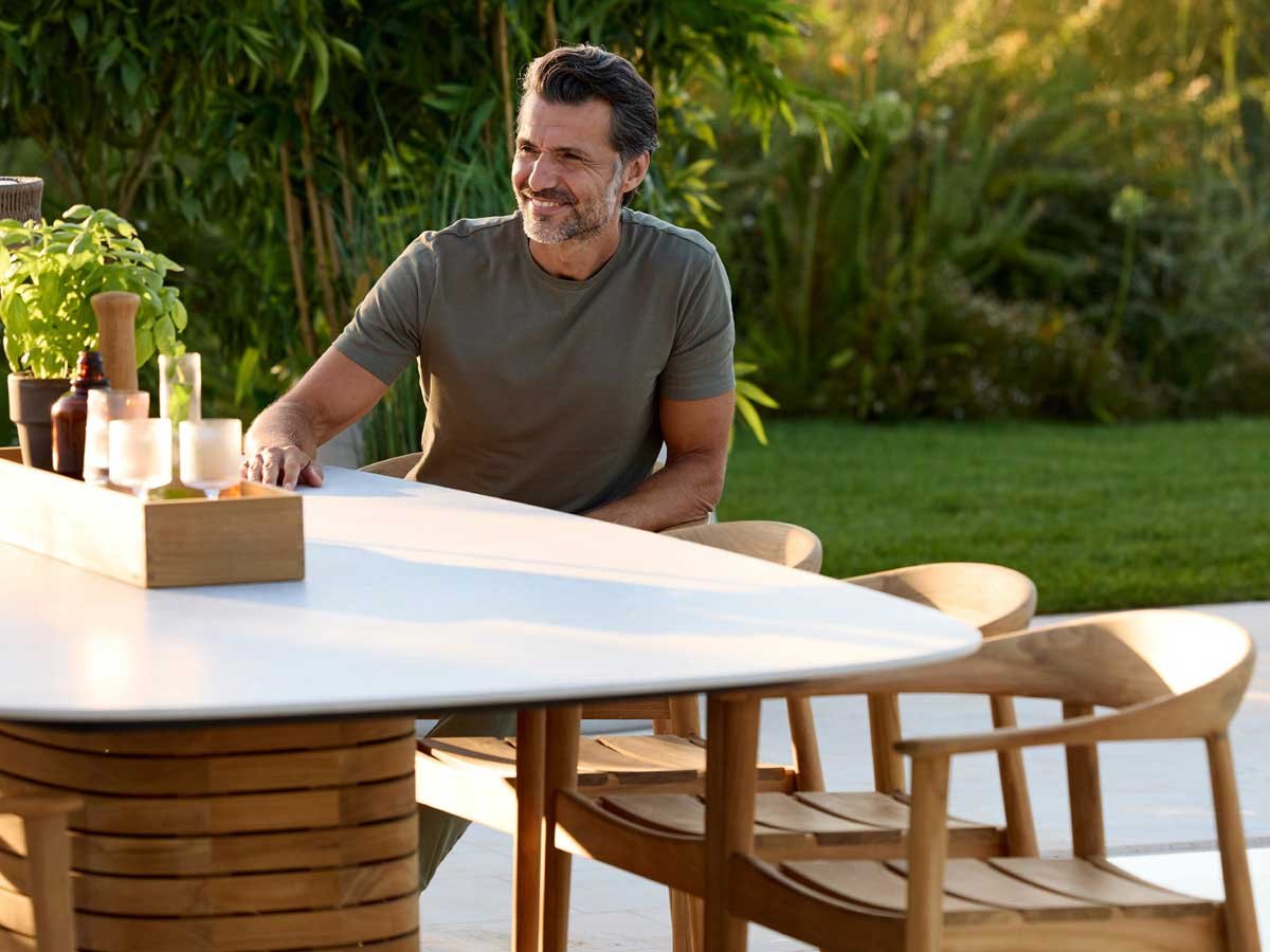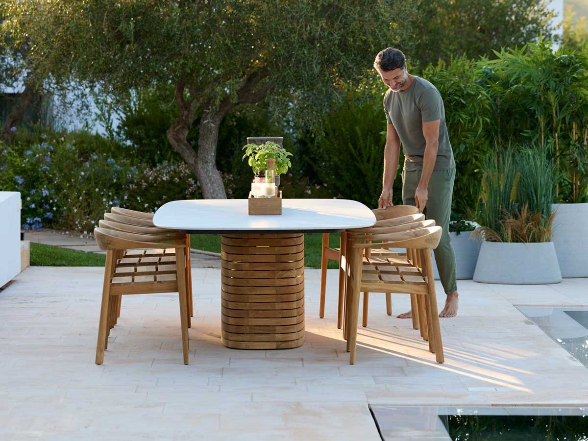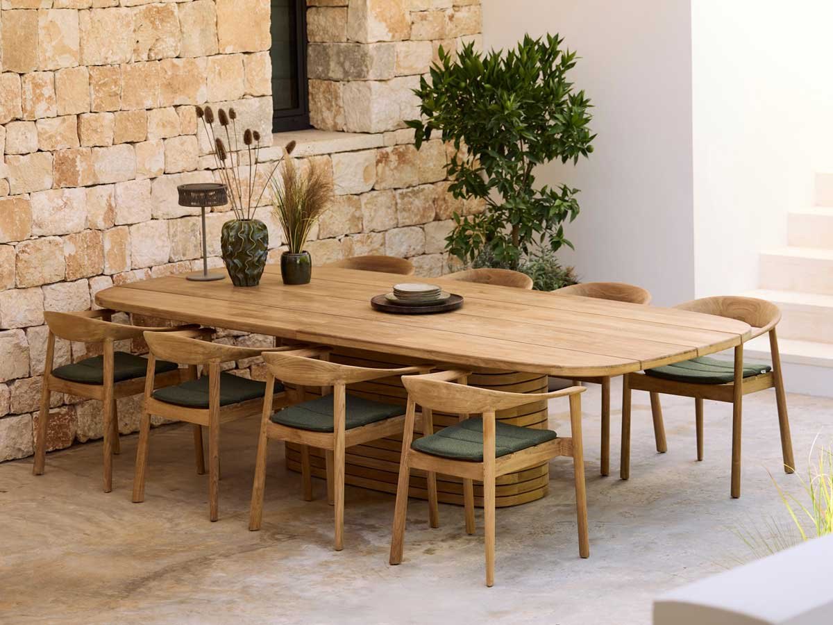 Ønsker du at bevare teaktræets oprindelige gyldenbrune nuance, anbefaler vi pleje med Cane-line Teak Care produkter.