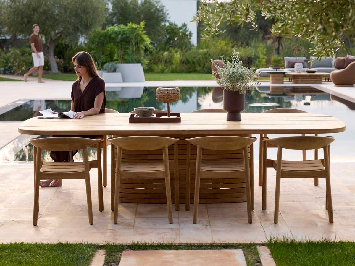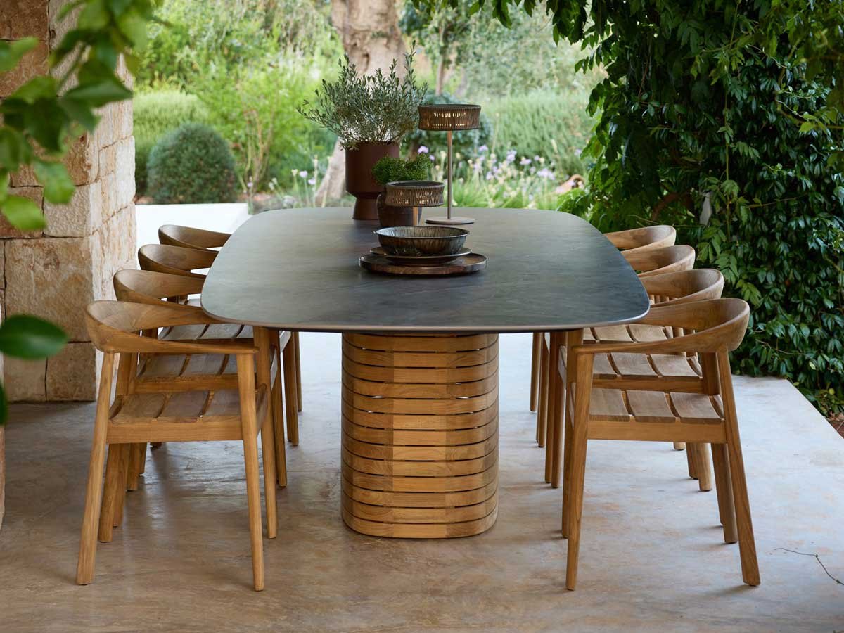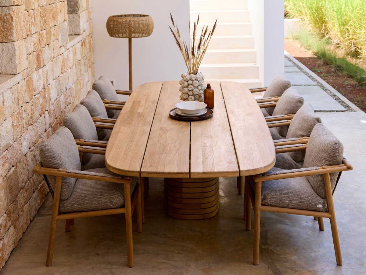 Ønsker du at bevare teaktræets oprindelige gyldenbrune nuance, anbefaler vi pleje med Cane-line Teak Care produkter.