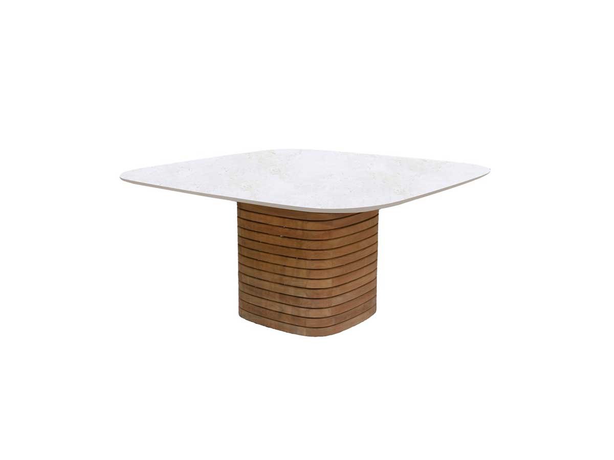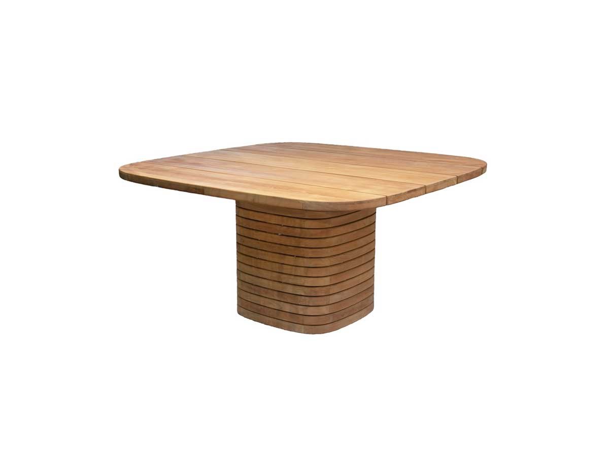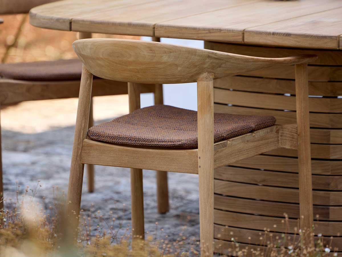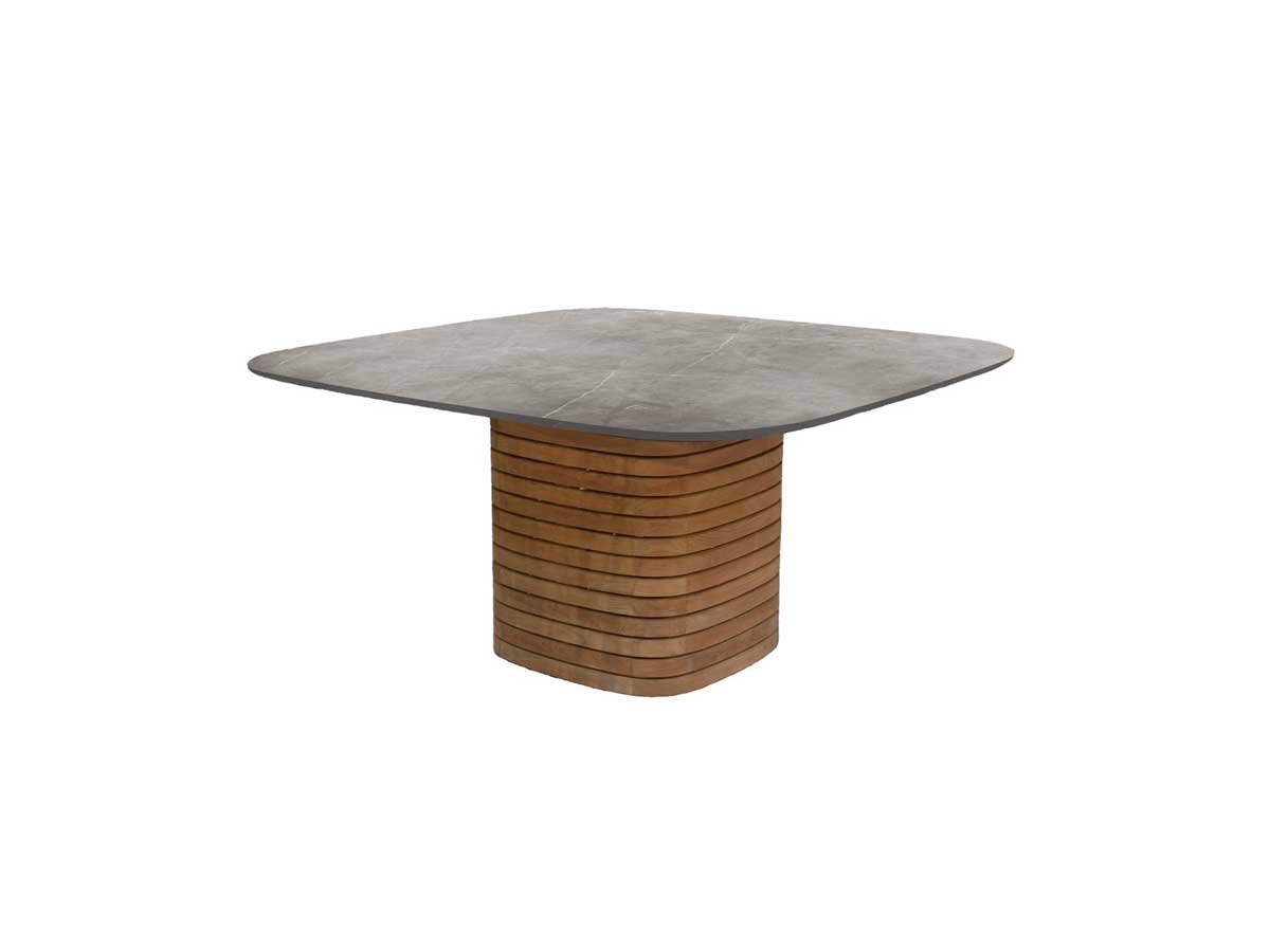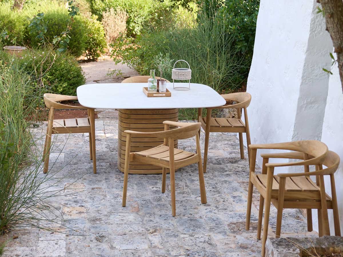 Med sin skulpturelle søjlebase og generøse bordplade (144 × 144 cm) med blødt afrundede hjørner sætter det kvadratiske Mellow spisebord fra Cane-line Design tonen for udendørs sammenkomster. Bordet har et karakteristisk og skulpturelt udtryk, der fungerer som et markant midtpunkt i spiseområdet — fra haveterrasser og gårdhaver til tagterrasser.