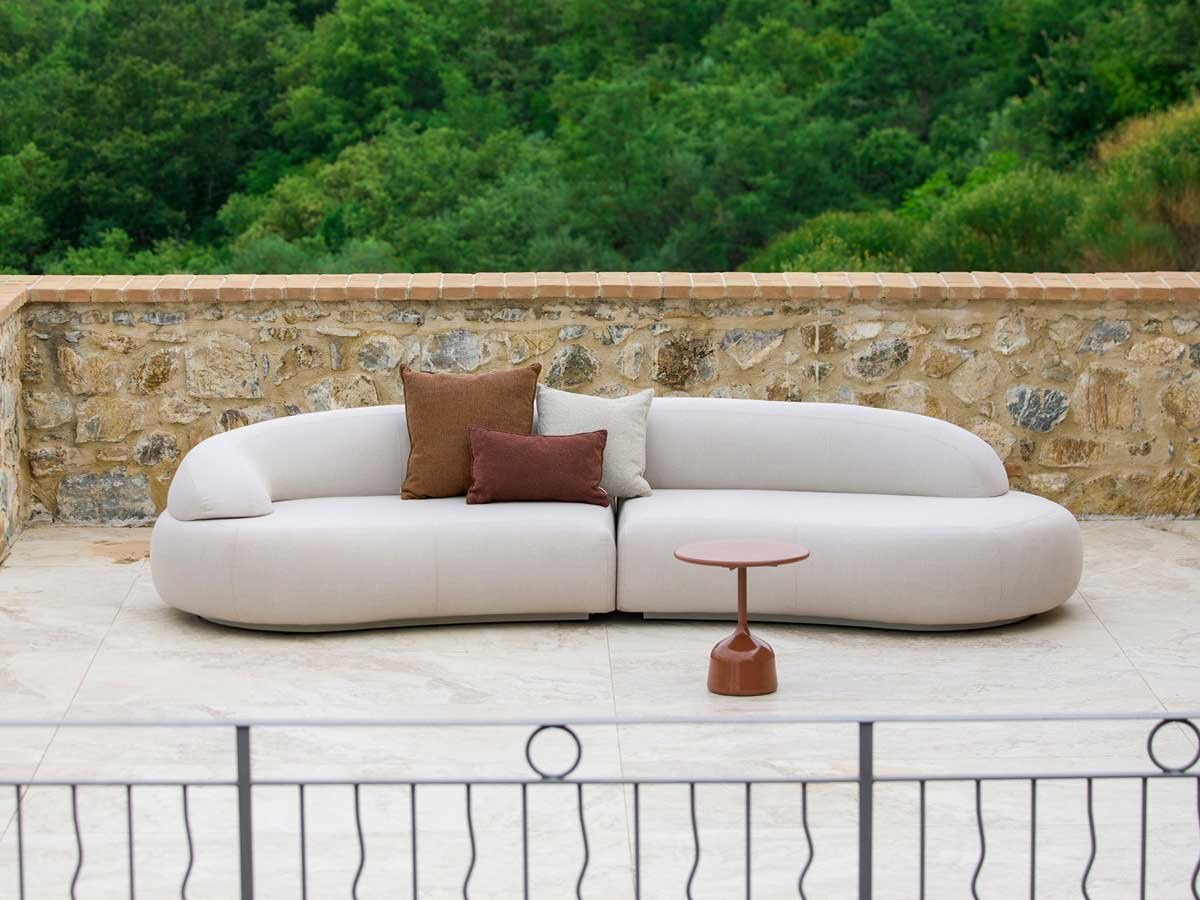 Mellow 4-personers sofaen kombinerer moduler med et langt armlæn og et kort armlæn, som skaber en stilfuld blanding af struktur og åbenhed. Denne gennemtænkte opsætning skaber et alsidigt loungeområde med en afslappet og indbydende atmosfære. Det lange armlæn giver rigelig støtte til afslapning, mens det åbne, korte armlæn skaber en luftig og rummelig fornemmelse, der gør det nemt at strække sig ud eller bevæge sig komfortabelt.