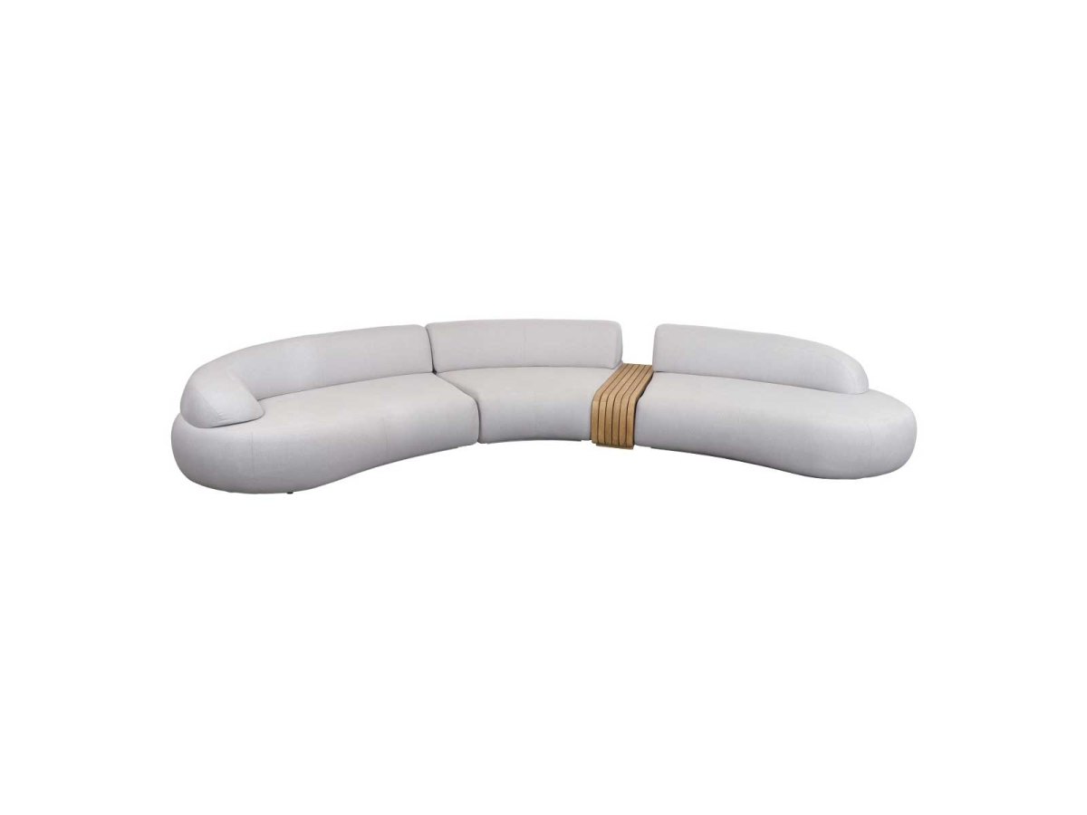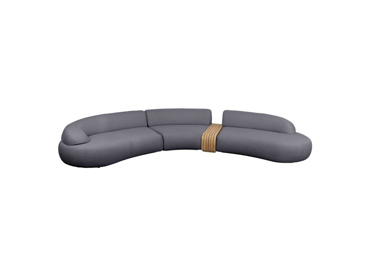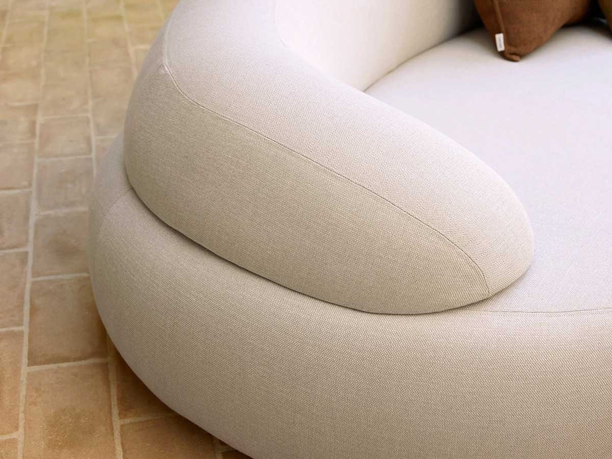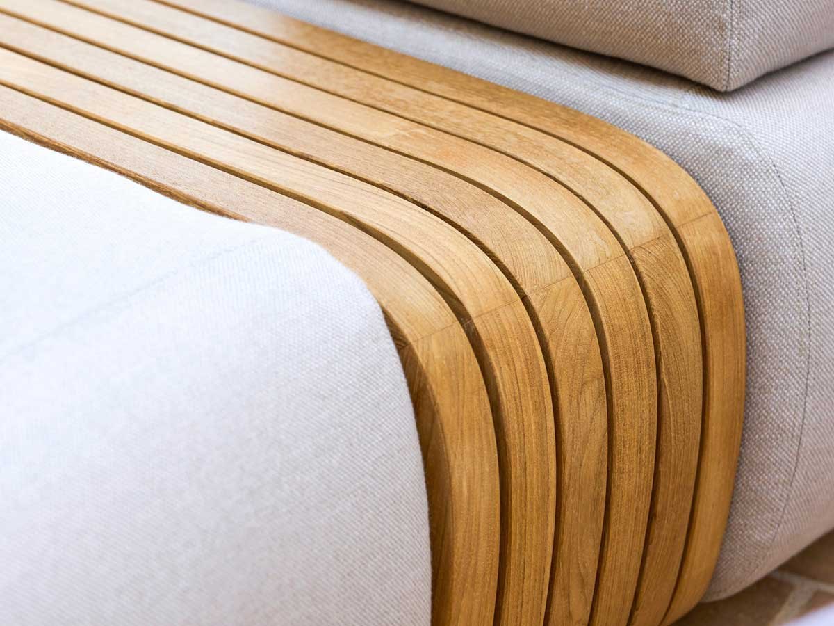 Det lange armlæn giver generøs støtte, mens det åbne, korte armlæn skaber en luftig og åben fornemmelse. Enkeltmodulet udvider loungemøblet og giver plads til flere gæster eller en ekstra mulighed for at strække sig.