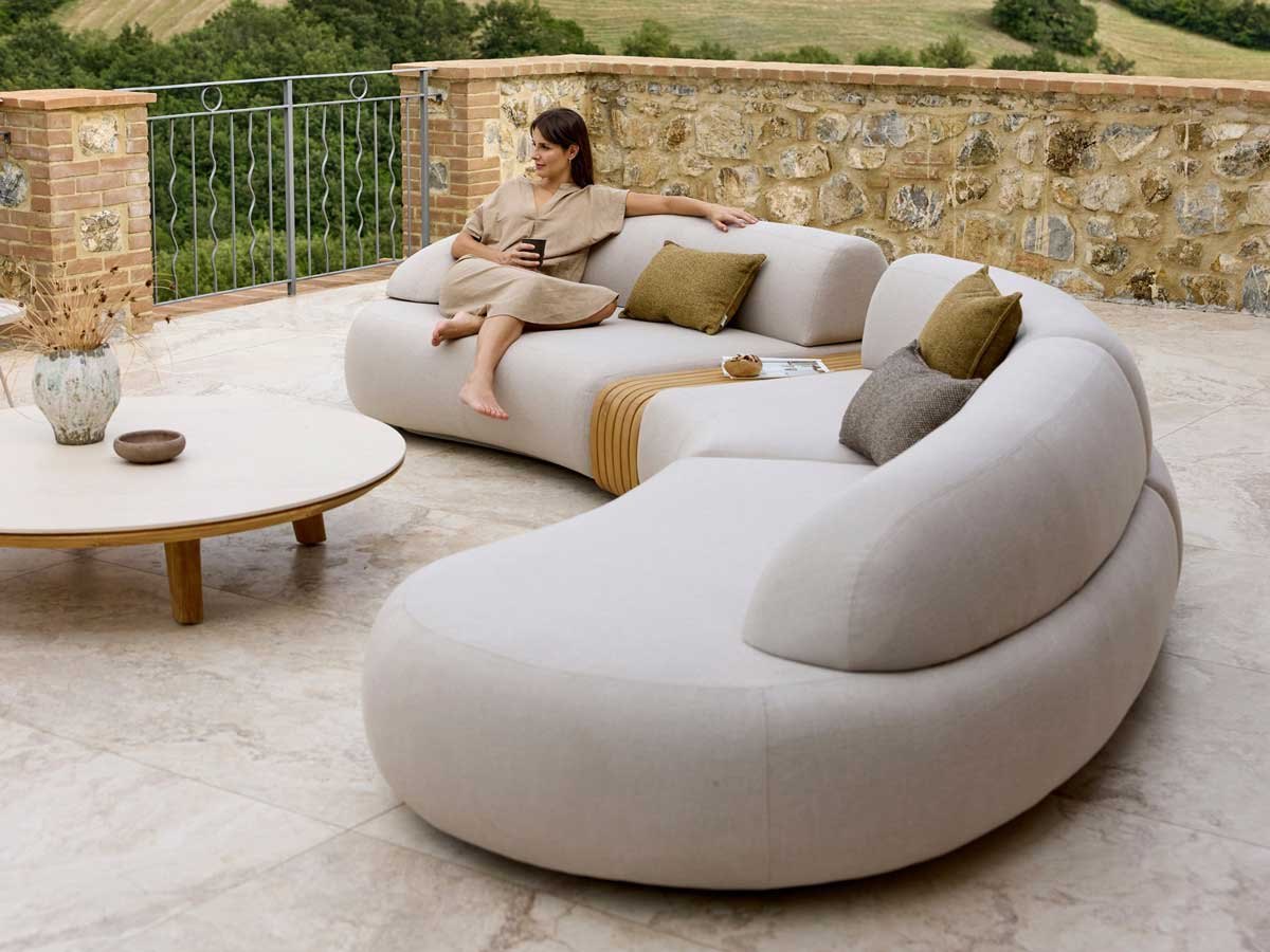 Mellow sofabordet fungerer som et funktionelt midtpunkt til drikkevarer, snacks eller dekorative elementer, der fremhæver følelsen af fællesskab. Hvert element er fremstillet med Cane-lines vejrbestandige AirTouch-stof og QuickDry & Airflow-teknologi, der sikrer hurtigtørrende hynder og enestående komfort året rundt. Denne modulopbygning forvandler ethvert udeområde til et sofistikeret og afslappende loungeområde – perfekt til lange samtaler, stille stunder eller festlige sammenkomster.