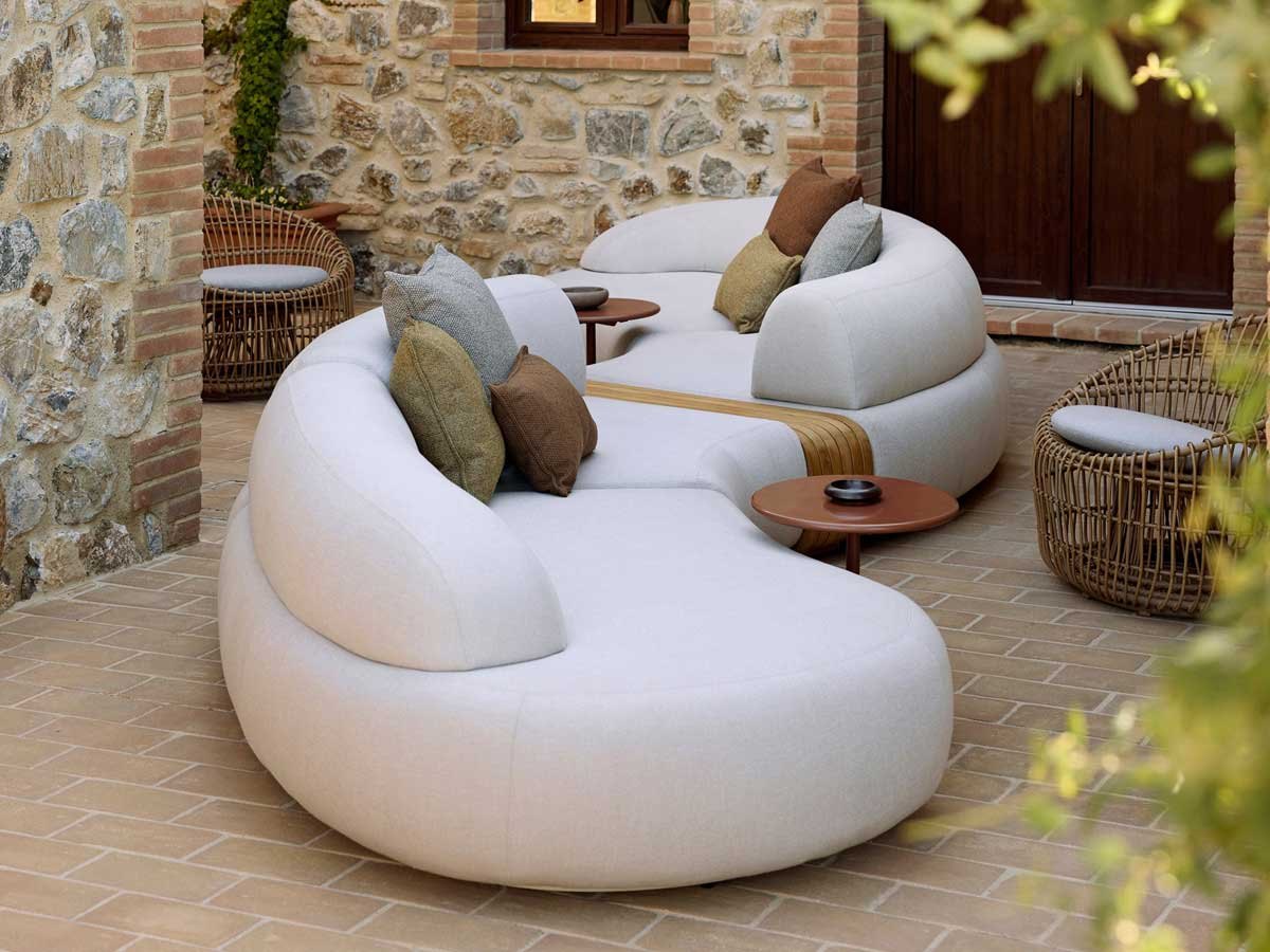 Mellow sofa højremodulet fra Cane-line Design har et kort ryglæn og kombinerer moderne elegance med alsidighed. Den runde form, lave siddehøjde og bløde polstring skaber en indbydende atmosfære til dit udendørs loungeområde. Det korte ryglæn giver designet et åbent udtryk, samtidig med at den høje komfort bevares.