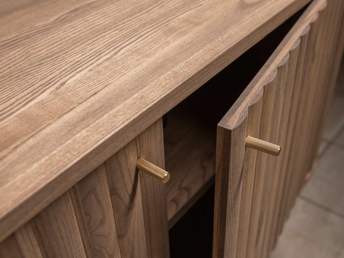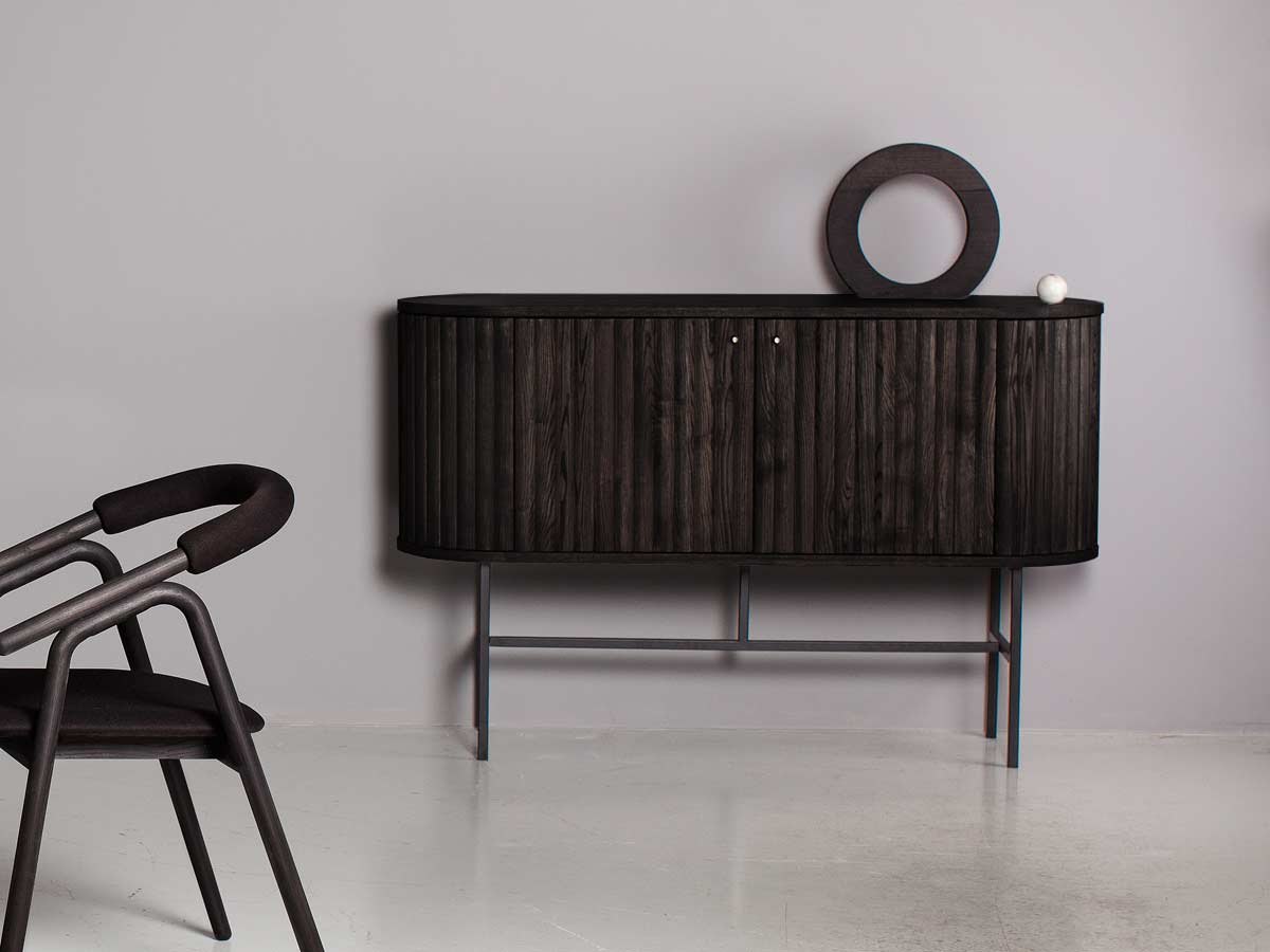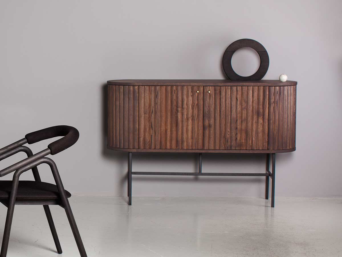 Bølgede skabsfronter og runde skabsender er med til at gøre de korte skænk i Velvet serien til en lille smart sag. Flotte detaljer og unikt design understøtter det eksklusive udtryk.