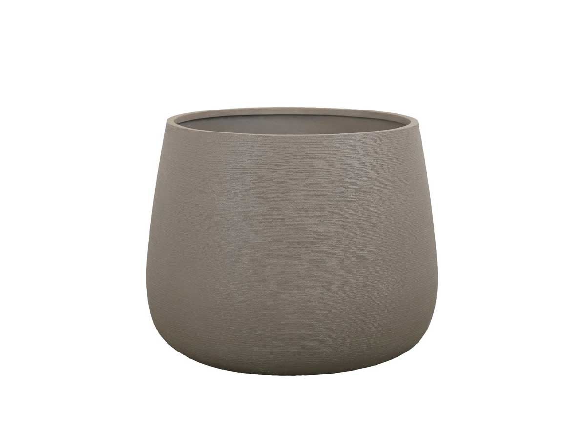 Med sin voluminøse og organiske form er den store runde Soil plantekrukke fra Cane-line Design ideel til alt fra slanke træer til grupper af blomstrende planter. Den afrundede form bløder de rene linjer i omgivelserne op, mens den teksturerede overflade tilfører taktil karakter til både uderum og indendørs indretninger. Krukken er ideel til at indramme indgangspartier, stier, havezoner eller loungeområder – uanset om det er i private eller professionelle omgivelser.