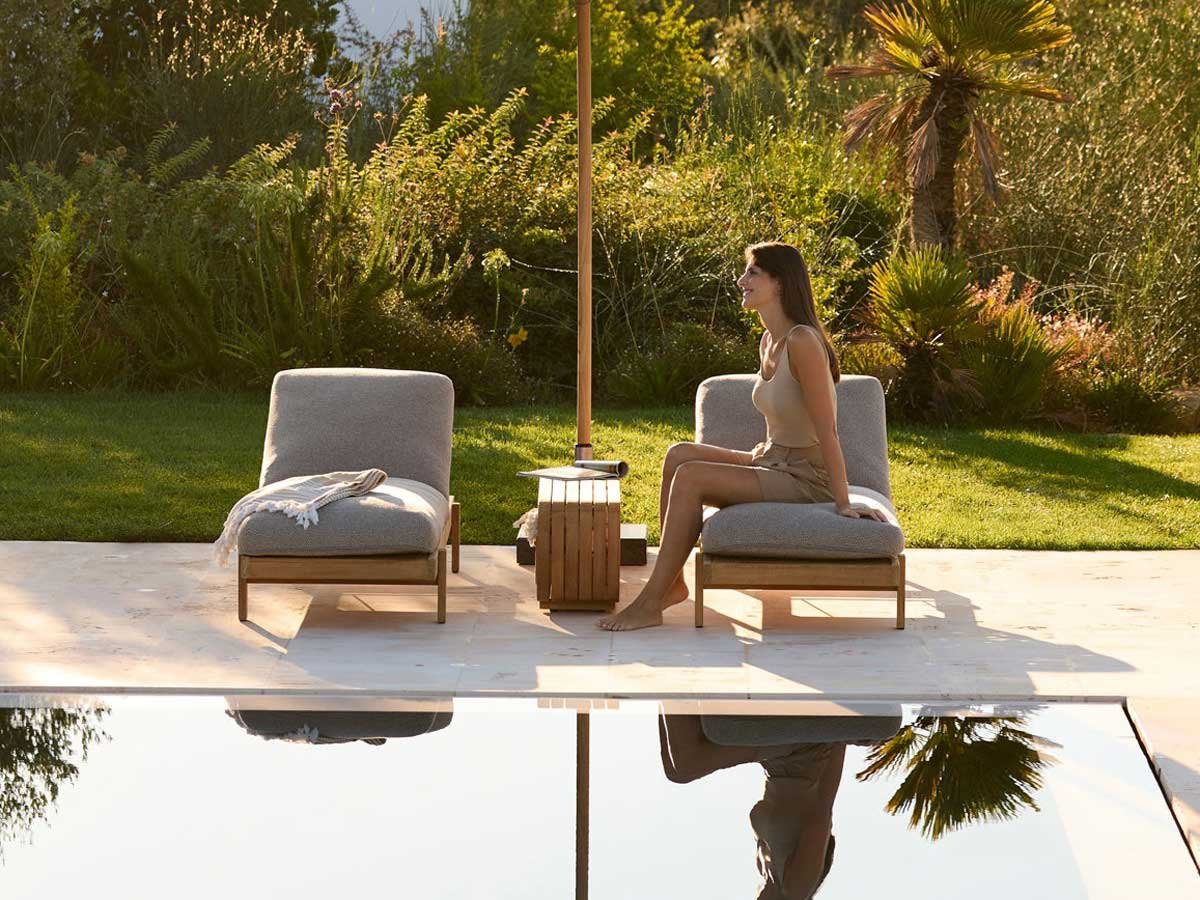 Vista solsengen fra Cane-line Design har et moderne og minimalistisk udtryk, udført i certificeret teaktræ af premiumkvalitet. Med sine rene linjer og taktile overflade tilfører solsengen underspillet luksus til uderummet. Den inviterer til ro og afslapning i solen, uanset om den placeres ved poolen, på terrassen eller i et eksklusivt loungeområde. Teaktræet sikrer lang holdbarhed og et varmt, tidløst udtryk, mens det justerbare ryglæn gør det nemt at tilpasse komforten efter behov. Kombinér solsengen med den matchende Vista hynde eller Siesta hynden, som fås separat, for at skabe ekstra komfort.